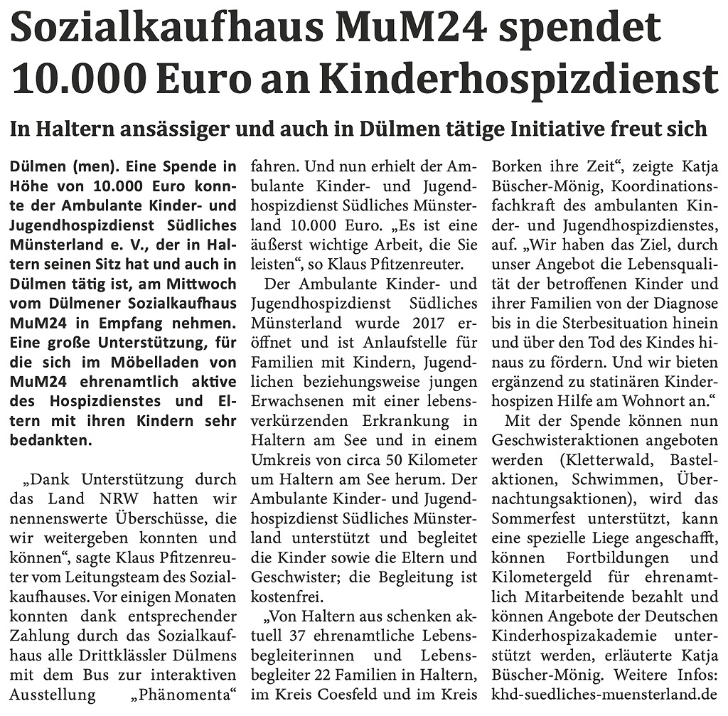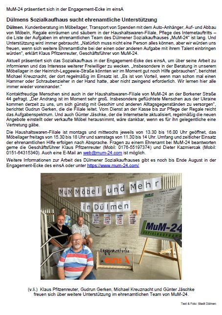 Bericht in der DÜLMENplus im November 2023
